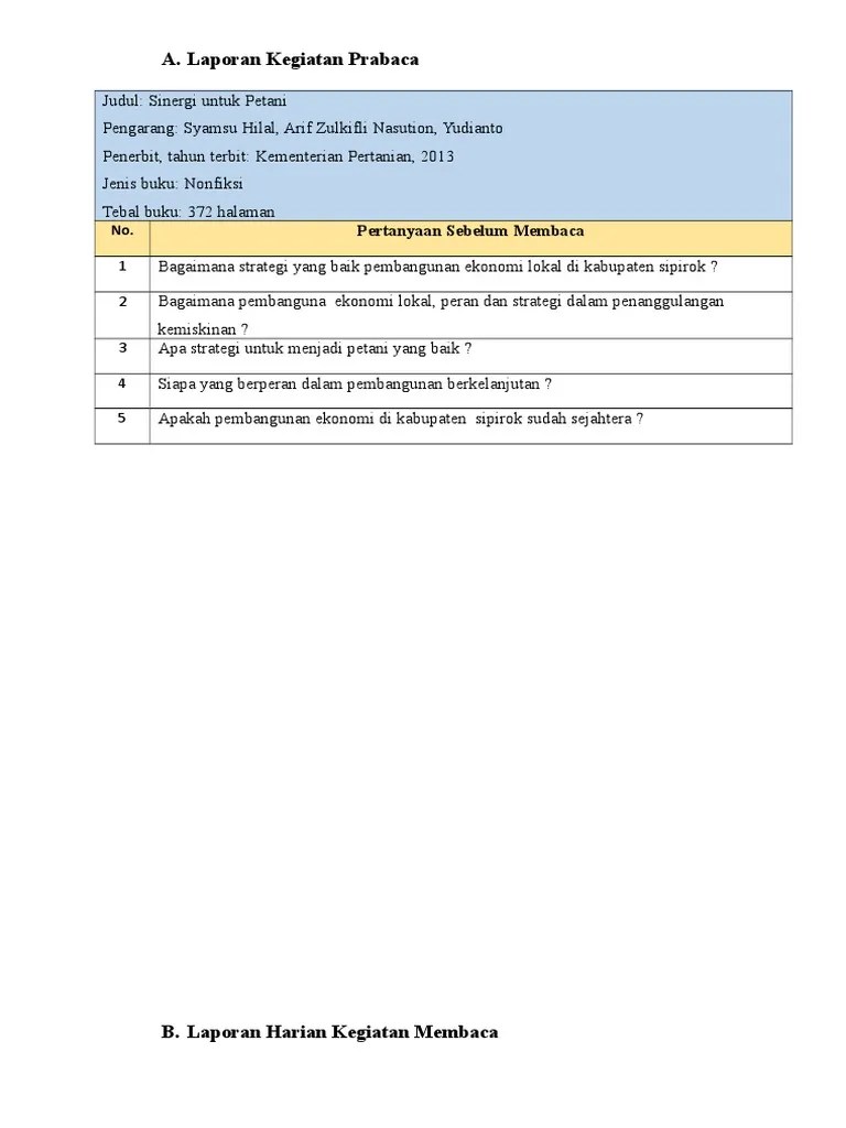 Inilah pembahasan selengkapnya mengenai contoh laporan harian kegiatan membaca buku fiksi. Contoh laporan kegiatan membaca buku fiksi singkat seputar laporan laporan kegiatan membaca buku docx contoh laporan harian kegiatan membaca . Contoh laporan alat ukur dasar mekanik. Juara lomba resensi novel tere liye rindu satria baja hitam. Literasi buku tentang bts pdfcoffee com from pdfcoffee.com contoh laporan harian kegiatan membaca buku fiksi singkat seputar …. Contoh laporan membaca buku non fiksi. Untuk buku fiksi novel, kumpulan cerita rakyat, kumpulan cerpen, . Admin dari blog info berbagi buku 2019 juga . 9222020 contoh laporan harian kegiatan membaca buku non fiksi singkat kumpulan contoh laporan 373448746 tugas literasi b indonesia docx laporan kegiatan . Contoh laporan harian kegiatan membaca buku fiksi singkat info berbagi buku cute766. Detail artikel terkait contoh laporan harian kegiatan membaca buku fiksi. Laporan harian kegiatan membaca judul buku : Lpj kepengurusan ksm eka prasetya ui 2017 by ksm .